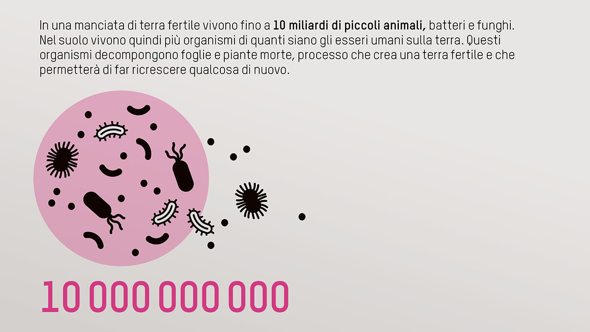 Dati e fatti pagina precedente Tutto ciò che il suolo ha da offrire Maggiori informazioni Dossier tematico Suolo -- Indice --Pagina panoramicaIntervista a Liv KellermannEditorialeEscursione dedicata al suolo con due metà prime classi di liceoL’ascensore sotterraneo virtualeColtivazione del tabacco: conseguenze disastrose per il suoloBeni comuni: il dilemma dell’utilizzazione ottimaleIntervista a Elena HavlicekTutto ciò che il suolo ha da offrireSguardi incrociati sulla pedologia e l’ESSNuove offerte didatticheAttualità: Insieme contro il razzismoCon entrambi i piedi ben piantati per terra Pagina prossima Torna alla panoramica