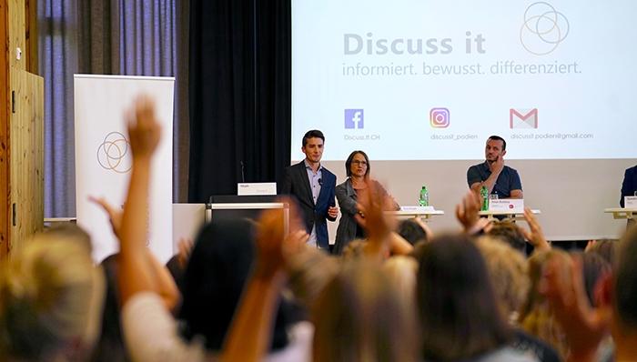 Mit Podiumsdiskussionen zu Abstimmungen, Wahlen oder einem aktuellen Thema erleben die Jugendlichen Politik und lernen durch die anwesenden jungen Politiker/innen verschiedene Perspektiven kennen.