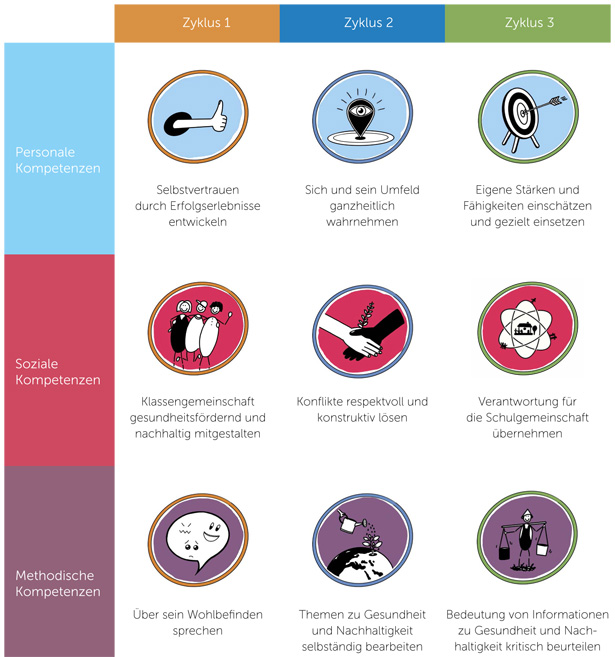 Das Ziel des Praxisinstruments «Orientierungshilfe» ist es, das Bewusstsein für die überfachlichen Kompetenzen im Lehrplan 21 sowie die Schnittstellen von Lebens-, Gesundheits- und BNE-Kompetenzen zu schärfen. Die kantonalen Schulnetz-Koordinatorinnen und -Koordinatoren hatten den Bedarf geäussert, den Lehrpersonen und Schulleitungen eine einfache, überschaubare und motivierende Orientierungshilfe für die Umsetzung in Schule und Unterricht bereitzustellen.