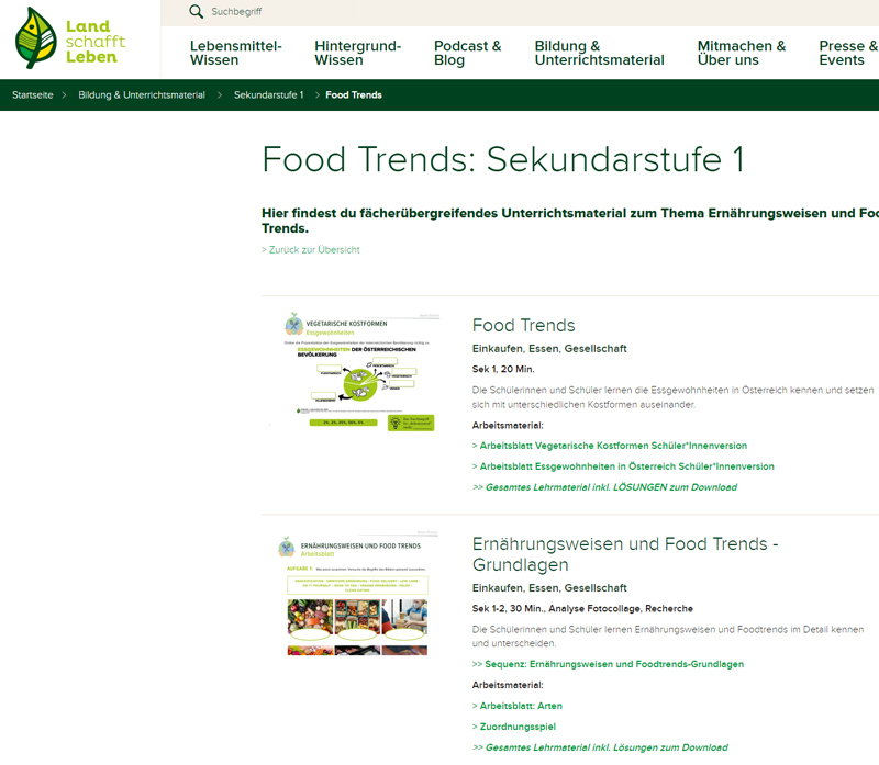 Während das erste Modul stark an Österreich orientiert ist, stellt ein weiteres Modul den Ansatz der «Planetary Health Diet» vor, welche die Gesundheit der Menschen mit der Gesundheit der Umwelt in Zusammenhang setzt und sich an den planetaren Grenzen orientiert. Das Factsheet «Ernährungswissen», hilfreich nicht nur für die Lehrperson, sondern auch direkt für Schüler und Schülerinnen der oberen Stufen, besticht durch seine gute Verständlichkeit und vor allem durch die Differenziertheit der zusammengetragenen Fakten.