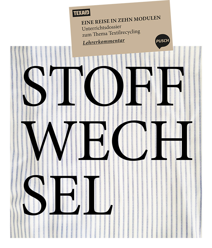 Jährlich kaufen Herr und Frau Schweizer rund 15 kg neue Kleider und geben 7 kg in die Kleidersammlung. In 10 Modulen greift das Unterrichtsmaterial verschiedene Stationen der Textilproduktion auf, vom Baumwollanbau bis zum eigenen Konsumverhalten. Ein besonderer Fokus wird entsprechend dem Auftraggeber TEXAID auf das Recycling von Altkleidern gerichtet. Das übersichtlich gestaltete Material umfasst ein Dossier für Lehrpersonen und je ein Dossier für den Zyklus 3 und den Zyklus 2 mit abgabefertigen Unterlagen, wobei die Anforderungen für zweiten Zyklus ziemlich hoch sind. Die grosse Methodenvielfalt (u.a. Mystery, Rollenspiel, Videoreportage) macht das Unterrichtsmaterial sehr abwechslungsreich