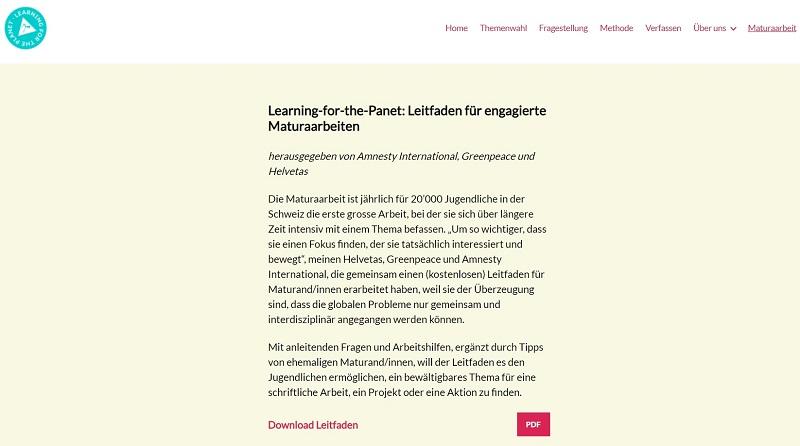 Mit anleitenden Fragen und Arbeitshilfen, ergänzt durch Tipps von ehemaligen Maturandinnen und Maturanden, will der Leitfaden es Jugendlichen ermöglichen, ein bewältigbares Thema für eine schriftliche Arbeit, ein Projekt oder eine Aktion zu finden.