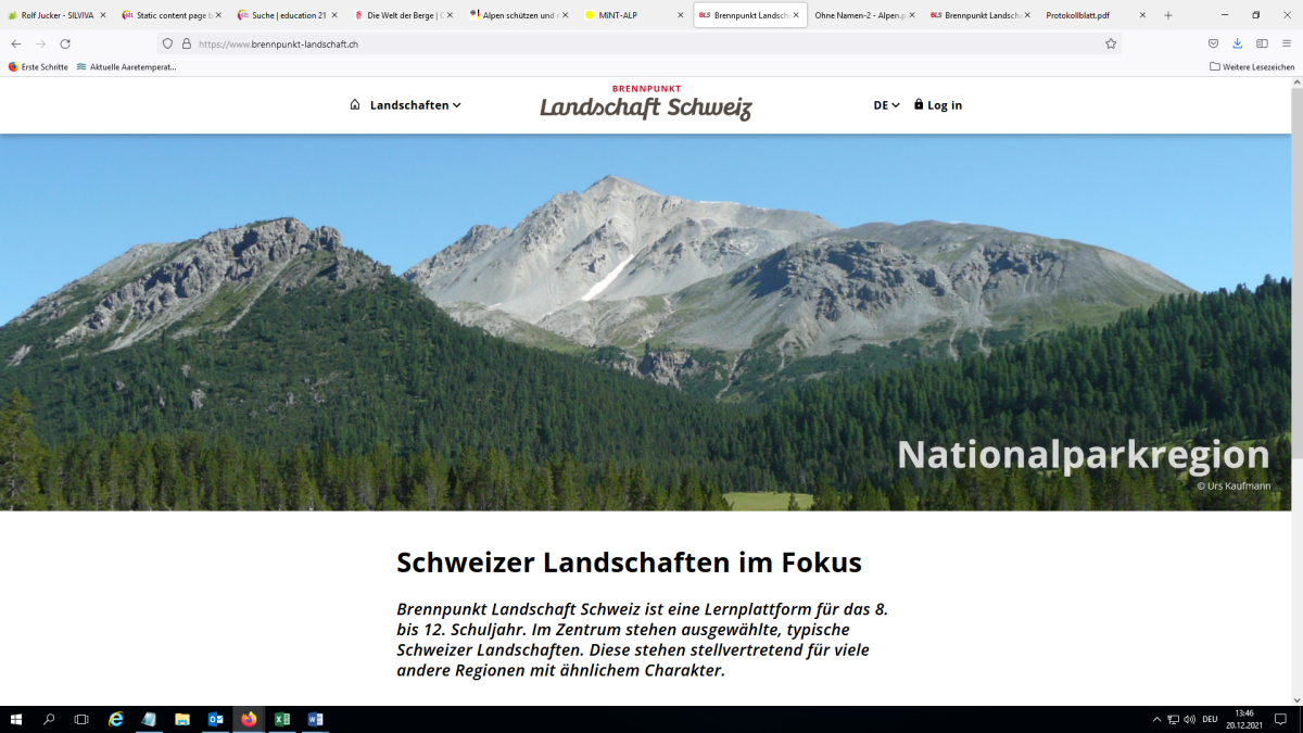 Die Lernplattform der PHBern fördert die Auseinandersetzung mit typischen Schweizer Landschaften, mit deren Hilfe vertiefte regionalgeografische Raumanalysen durchgeführt werden können. Für den Alpenraum gibt es 4 Bildungsmodule: Stromlandschaft Grimsel, der grosse Aletschgletscher, Nationalpark und Zermatt sowie Gantrisch als Voralpengebiet. Die Module werden in Zusammenarbeit mit Studierenden erarbeitet und in der Praxis erprobt.Die Welt der Berge