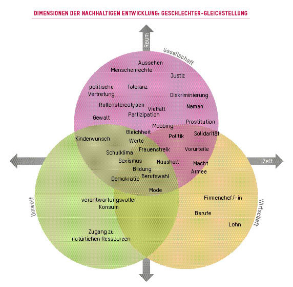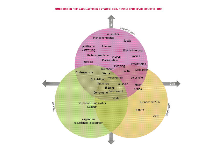 Fragen rund um die Gleichstellung von Frauen und Männern bleiben aktuell, obwohl diese seit 1981 in Artikel 8 der Bundesverfassung verankert ist. Das 50-jährige Jubiläum des Frauenstimmrechts in der Schweiz im Jahr 2021 ist eine gute Gelegenheit, mit Schülerinnen und Schülern aller Altersstufen, von Zyklus 1 bis zur Sekundarstufe II, an diesem Thema zu arbeiten. Wir alle sind in unseren gegenseitigen Beziehungen, in unserem Verhältnis zur Arbeitswelt, zur Gesellschaft und zur Umwelt täglich mit dieser Thematik konfrontiert. Die Gleichberechtigung zwischen den Geschlechtern ist ein sozialer Zugang für BNE in der Schule.