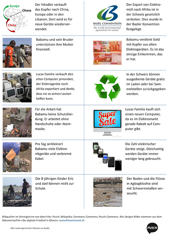 Anhand des Themas Schoggi werden den Jugendlichen exemplarisch wirtschaftliche, politische und zivilgesellschaftliche Zusammenhänge sowie die Auswirkungen von missachteten Menschenrechten aufgezeigt. Die Schülerinnen und Schüler lernen, dass ihr Konsumverhalten einen Einfluss auf andere Menschen in Entwicklungs- und Schwellenländer hat.Abfall und Konsum (PUSCH)
