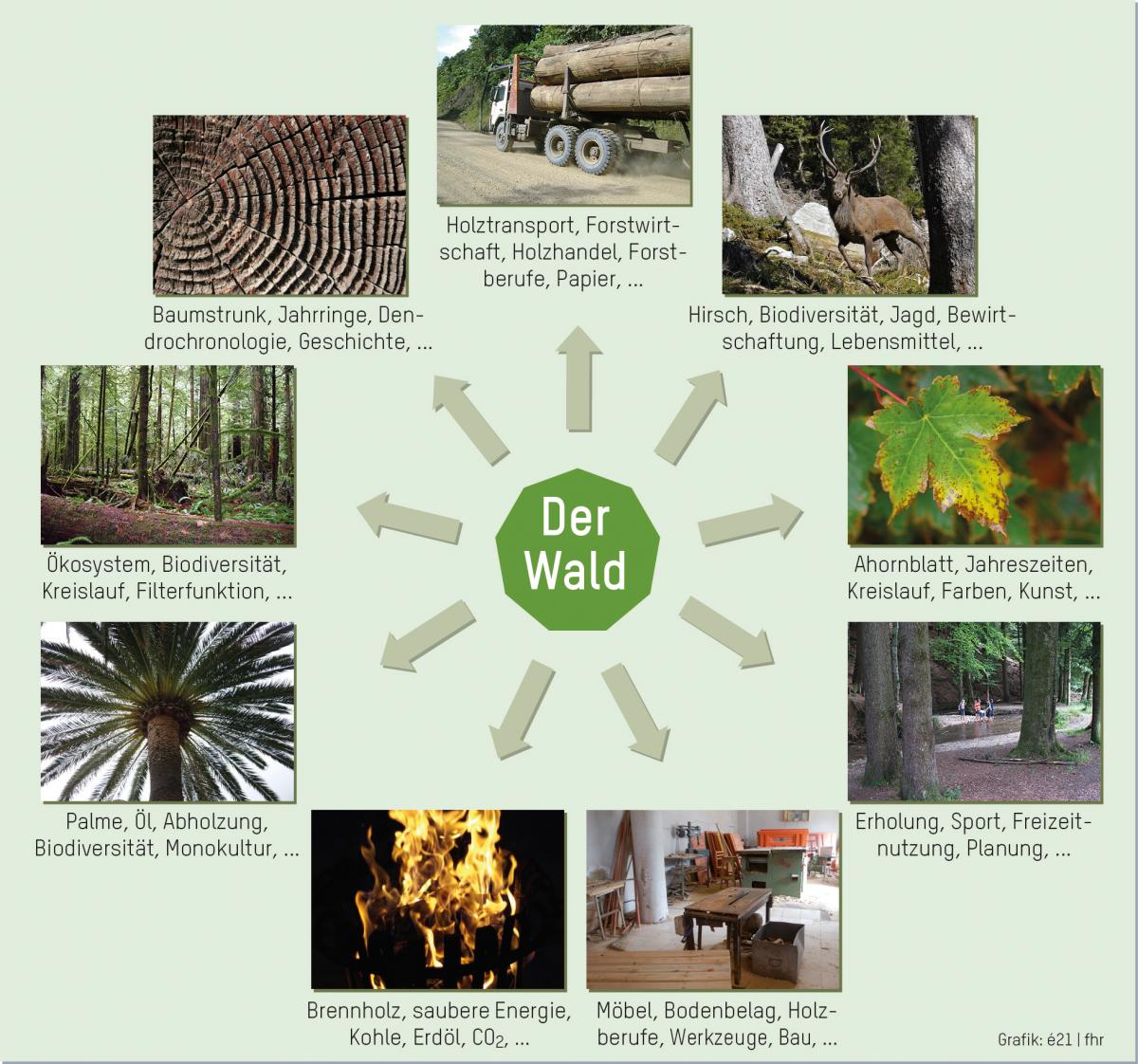 «Wie nutzen Tiere, Pflanzen und Menschen den Wald nachhaltig?». Mit dieser BNE-Frage werden die Schülerinnen und Schüler auf spielerische Weise an die Komplexität des Waldes herangeführt. Zum Abschluss entwickeln sie eigene Visionen und Aktionen, um den Wald nachhaltig zu nutzen.Querblicke: Wald