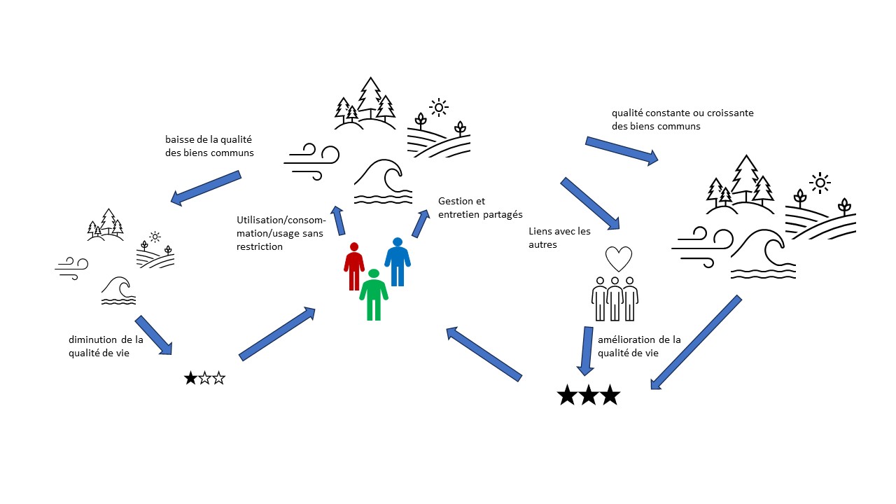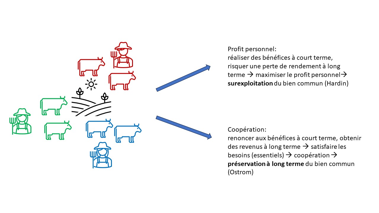 Dans le cas de biens communs comme l’air propre, qui sont en principe accessibles à toutes et tous et peuvent être utilisés par tout le monde, les réponses à ces questions revêtent une importance cruciale pour un développement durable. De surcroît, les apprenant.e.s sont entouré.e.s au quotidien par des biens communs, par ex. sous la forme de l’école publique, de la forêt ou, à la maison, de la table familiale. C’est pourquoi le thème des « biens communs » a sa place dans un enseignement EDD.