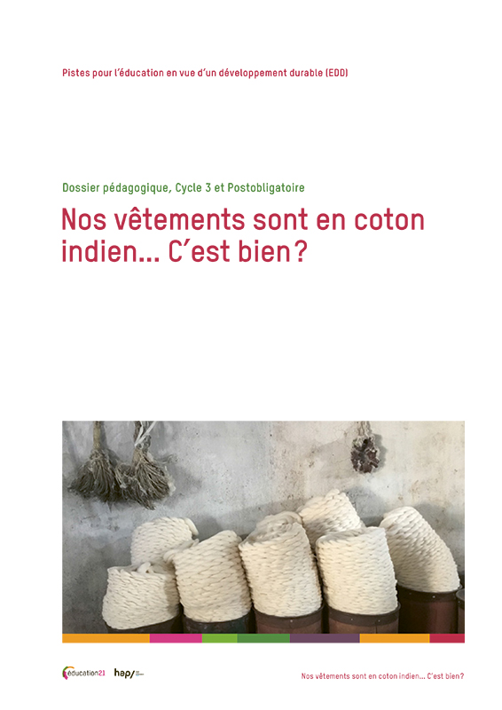 La thématique du coton produit à l'autre bout du monde (Inde) et porté chez nous par les élèves visés, ainsi que les activités proposées, conduisent les élèves à mobiliser toutes les perspectives du développement durable. Ils s'interrogent sur la provenance de leurs vêtements, la matière dont ils sont faits, les différents modes de production et leurs impacts économiques, sociaux et environnementaux, ici et là-bas, hier, aujourd'hui et demain. Les activités conduisent à des réflexions globales, mais également individuelles, par exemple: en fonction de mes apprentissages, quelles décisions je vais prendre pour ma propre consommation de vêtements ?Le Gare à l’eau !