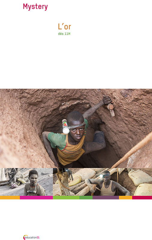 Ce dossier pédagogique à télécharger, construit autour de 11 images, aborde la question de l’extraction minière et de son lien avec nos objets de consommation quotidiens comme le téléphone portable. En plus des images, le dossier contient : - une introduction thématique, - une séquence pédagogique modulable s’appuyant sur les images, - quelques ressources pour approfondir le sujet. Sur cette base, l’enseignant-e pourra amener des informations plus factuelles, tout en favorisant la pensée critique et l’orientation vers l’action.L'or - Mystery