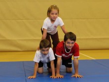 Le livret en mouvement et avec le sourire est l’une des nombreuses activités proposées par le programme «l’école bouge» que Bibiane Deillon, enseignante à Vuisternens-devant-Romont, pratique quotidiennement avec ses élèves de 6-7H.Alimentation et activité physique chez les enfants et les adolescents (Promotion Santé suisse)