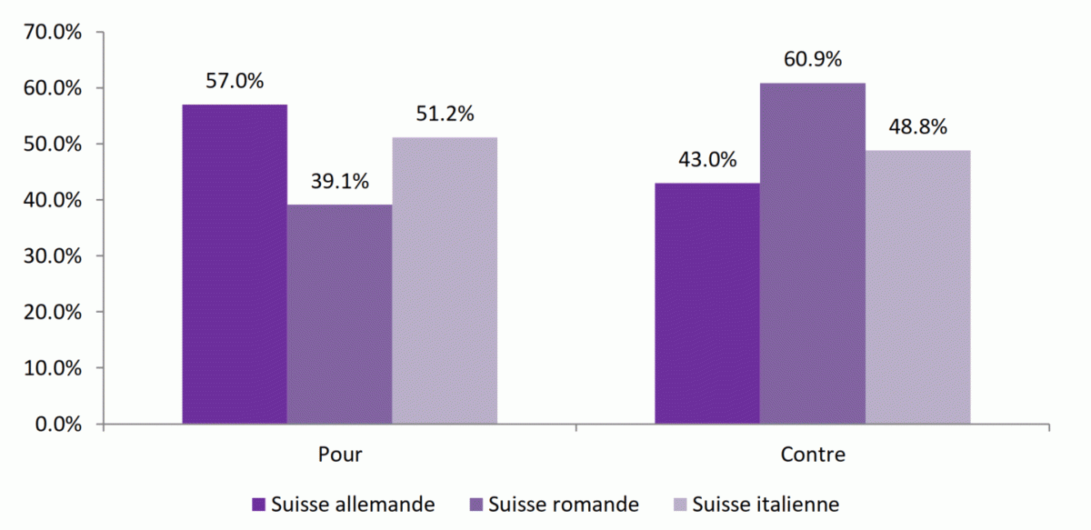 Source: www.bonus.ch/Pdf/2020/Telephonie-mobile-5G.pdfLes réponses concernant les motivations des participants contre la 5G révèlent d’importantes différences régionales. Les risques sanitaires sont la première préoccupation de 75,6 % des Suisses italiens, alors que ce chiffre n’est que de 41 % du côté alémanique ; les Suisses alémaniques sont en effet sensiblement divisés entre les risques sanitaires et environnementaux : 40,4 % des utilisateurs de cette région linguistique sont principalement préoccupés par l’impact environnemental de la 5G, un pourcentage qui tombe à 17,1 % pour les Suisses des régions italophones et à 25,7 % pour les Romands.