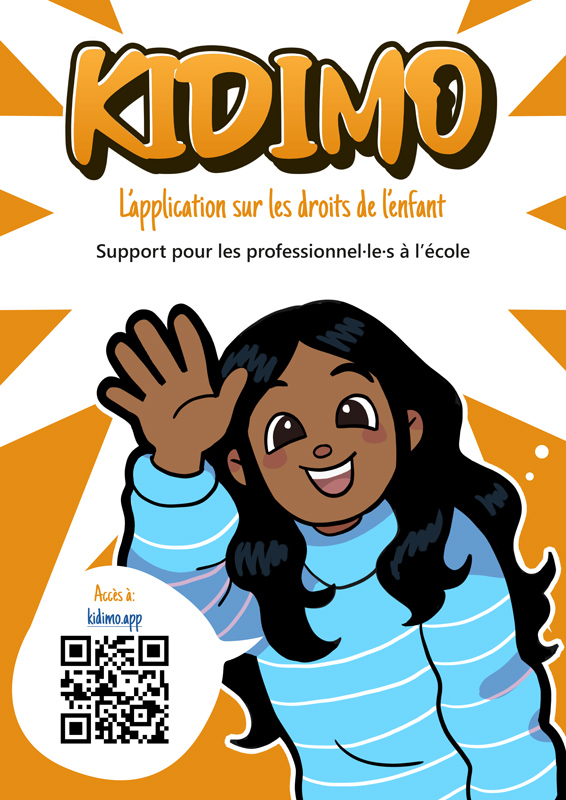L'application KIDIMO permet aux élèves de découvrir les droits de l'enfant de manière ludique. Ils se créent un avatar et découvrent avec lui, à l'aide de tâches, trois univers présentant des scènes qui abordent différents droits de l’enfant : droit à la protection, droit à l’encouragement et droit à la participation.