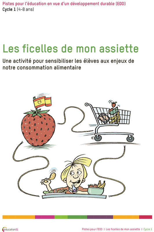 Cette activité permet d’aborder, de manière simple et ludique, notre consommation alimentaire et les liens qui en découlent. Chaque élève reçoit une « identité », qui peut être un aliment de l’assiette (fraise, poulet, frite…), un acteur de la chaîne de production (paysan, chauffeur-routier… ) ou un élément en lien (eau, champs, camion-poubelle…). Après s’être appropriés leurs identités , les élèves représentent les différents liens à l’aide d’une ficelle. Cet exercice leur permet de prendre conscience de l’origine et de l’impact des différents aliments, exerçant ainsi leur pensée systémique. A partir des constats des élèves, l’enseignant-e peut ensuite approfondir l’une ou l’autre thématique et engager la réflexion sur les pistes d’action possibles. L’activité est inspirée du « jeu de la ficelle » développé par les ONG belges Quinoa et Rencontre des Continents. éducation21 l’a adaptée au contexte suisse et aux élèves du cycle 1. Il existe également des versions pour les cycles 2 et 3.