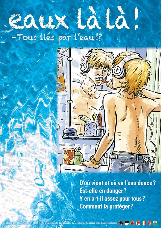 Kit pédagogique sur l'eau s’adresse aux élèves du 3ème cycle et se compose d'un poster, de 16 cartes-gestes illustrées comportant des questions, d'une brochure pour l'élève et d'un mode d'emploi pour l'enseignant-e (tous librement téléchargeables). Le kit peut être utilisé pour les cours de géographie, de sciences de la nature, de citoyenneté et d'économie familiale.