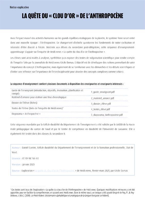 L’objectif de cette séquence d'enseignement est de développer des notions permettant de saisir l’importance du concept d’Anthropocène, de se familiariser avec les démarches et les débats scientifiques.
