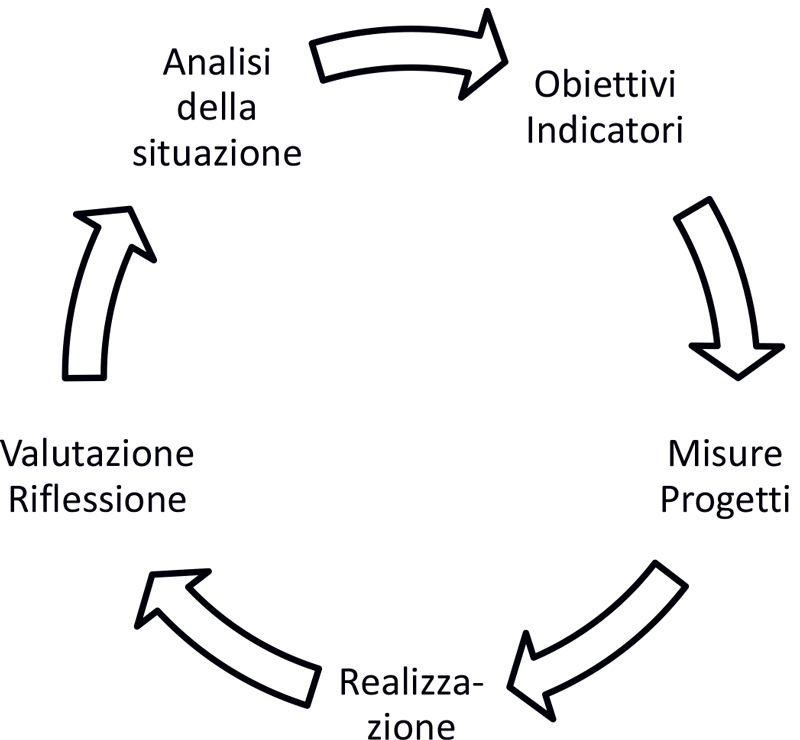 Non vi sono ricette pronte per l’ESS. Ogni scuola crea il proprio percorso che non sempre è lineare. Vi sono però alcune fasi lungo il processo che hanno dato prova di sé nella pratica e possono servire da parametri di riferimento. Per l’intero processo sono condizioni essenziali il chiaro sostegno della direzione della scuola e l’adesione della maggioranza del corpo docenti. L’ESS a scuola è un compito comunitario che necessita di tempo e che crea dei legami. Alcuni istituti pionieri hanno già iniziato il percorso e dimostrano che l’ESS ha un potenziale.