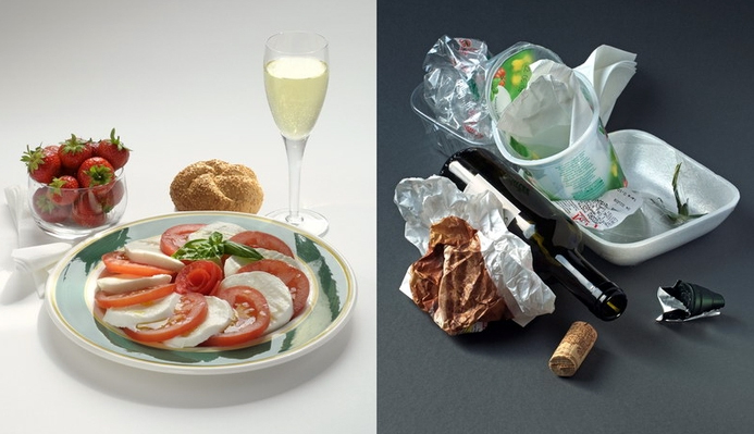 Gli scatti di Rosanna Maiolino formano la mostra "Measure for measure" della quale alcune immagini sono visibili anche sul sito. Si tratta di immagini doppie che, da una parte, mostrano un succulento piatto pronto da consumare, dall'altra i rifiuti che questo piatto ha generato e lascia dietro di sé: un invito alla riflessione!Salva del cibo, aiuta il pianeta