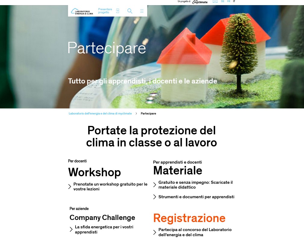 Il laboratorio di energia e clima è un progetto educativo di myclimate. Si rivolge agli apprendisti svizzeri del 1°-4° anno di apprendistato. Da soli o in team, gli apprendisti lavorano su semplici progetti nei settori del risparmio energetico, dell'efficienza energetica o delle energie rinnovabili sul posto di lavoro o nella vita quotidiana. I materiali dei blocchi 1-3 possono essere usati per esempio in geografia nel 3° ciclo.