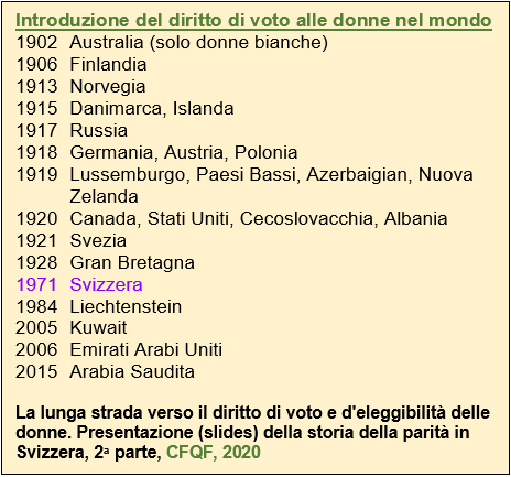 Omaggio 2021: 50 anni di diritto di voto e di elezione alle donne