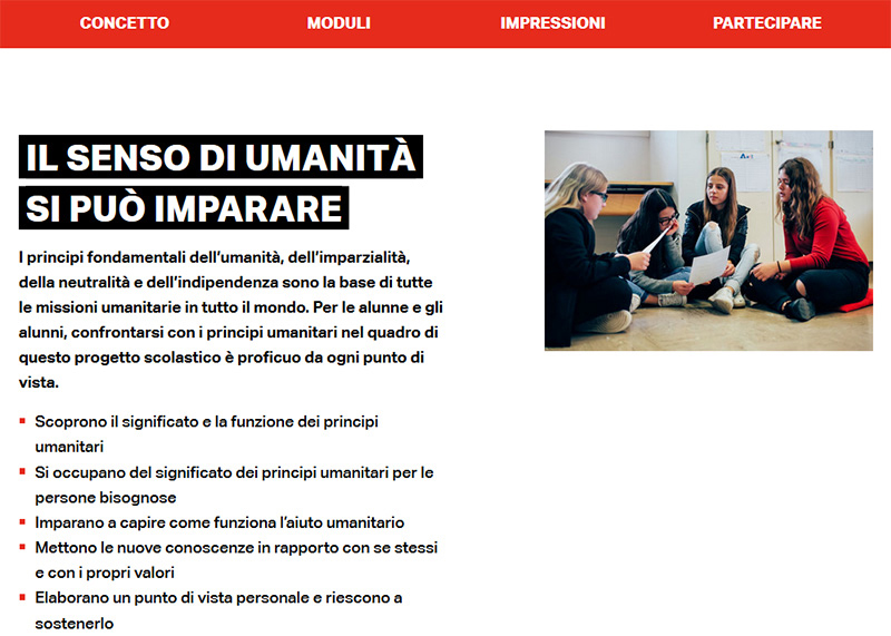 Uno strumento di apprendimento online che permette di approfondire i valori umanitari e le questioni relative all'assistenza umanitaria. La struttura del corso è modulare. I moduli 1 e 2, ad esempio, trattano i principi dell'assistenza umanitaria. Vengono poi affrontate le controversie che sorgono. Concentrandosi sul processo di apprendimento, che è oggetto di una riflessione ripetuta e variegata.