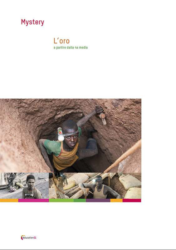 Noi associamo l'oro, preziosa materia prima, a momenti di felicità, senza renderci conto di quello che accade dietro le quinte. La produzione dell'oro richiede il lavoro di tanti bambini che si calano nelle miniere, a scapito della loro salute visto l'utilizzo di mercurio per l'estrazione. Ignoriamo inoltre il 70% circa del materiale estratto annualmente in tutto il mondo viene raffinato in Svizzera. Confrontarsi e imparare a conoscere queste interdipendenze è lo scopo principale di questo mystery. I mystery sono metodi didattici che promuovono il pensiero sistemico e affrontano tematiche del nostro quotidiano permettendo di riflettere su complesse interdipendenze. Questo mystery è stato creato da una docente di una scuola professionale ticinese.