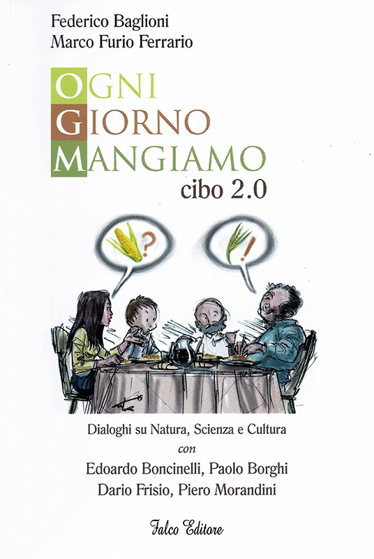 Di fronte a un piatto tipico della cucina italiana quattro amici si ritrovano a discutere di OGM. Un cuoco preoccupato della tutela dei prodotti tipici, la giornalista sempre a caccia di notizie eclatanti, l'attivista politico fremente di giocare il ruolo di contro-informatore e il ricercatore universitario. Ne segue un dialogo dal sapore socratico: una riflessione che porta i protagonisti e il lettore a toccare questioni di ampio respiro. Si affrontano tutte le domande legate alla vicenda: i rischi per la salute e i timori per le degenerazioni ambientali, ma anche le questioni economiche ed etiche. Una cena per ogni aspetto rilevante, invitando, di volta in volta, un esperto ad affrontare i dubbi e per verificare le informazioni che circolano. L'intento è di coinvolgere il lettore con una struttura narrativa interattiva: i personaggi danno voce a posizioni diffuse nell'opinione pubblica, confrontate con concetti tratti da fonti autorevoli, alleggeriti nel lessico. Ci sono riferimenti per verificare i dati riportati e permettere, a chi volesse, di trasformare la lettura d'intrattenimento a studio impegnato. Si strutturano così diversi livelli d'apprendimento.