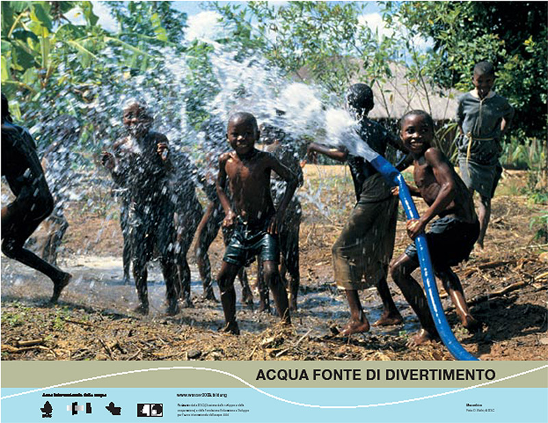 Un fotolinguaggio prodotto dalla Fondazione Educazione e Sviluppo, su mandato della DSC, per l'anno internazionale dell'acqua 2003. Una serie di manifesti dedicati all'acqua nel mondo con un dossier contenente dei suggerimenti didattici per l’utilizzo in classe e delle informazioni supplementari. Le immagini abbinate a uno slogan ciascuno fanno immergere gli allievi nei diversi aspetti del tema: Acqua un bene prezioso | Acqua sempre più rara |Acqua potabile per tutti! | Acqua fonte di cibo | Chi troppo, chi niente | Acqua fonte di divertimento | Acqua fonte di fatica | A chi appartiene l'acqua? | L’acqua unisce. | Acqua fonte sacra. Il dossier didattico è disponibile unicamente in formato PDF.