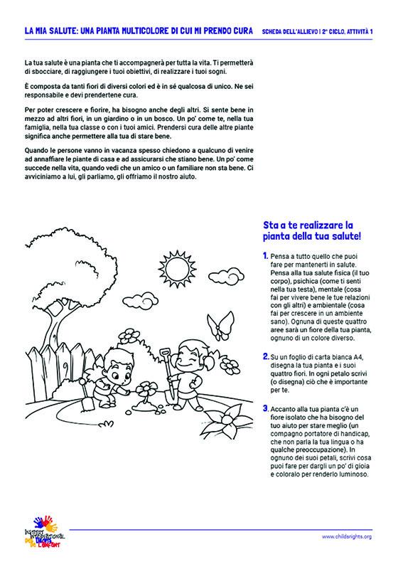Per il 2° ciclo, le attività permettono di riflettere sui vari aspetti della salute e sui possibili legami tra la Convenzione sui diritti dell'infanzia e la salute.