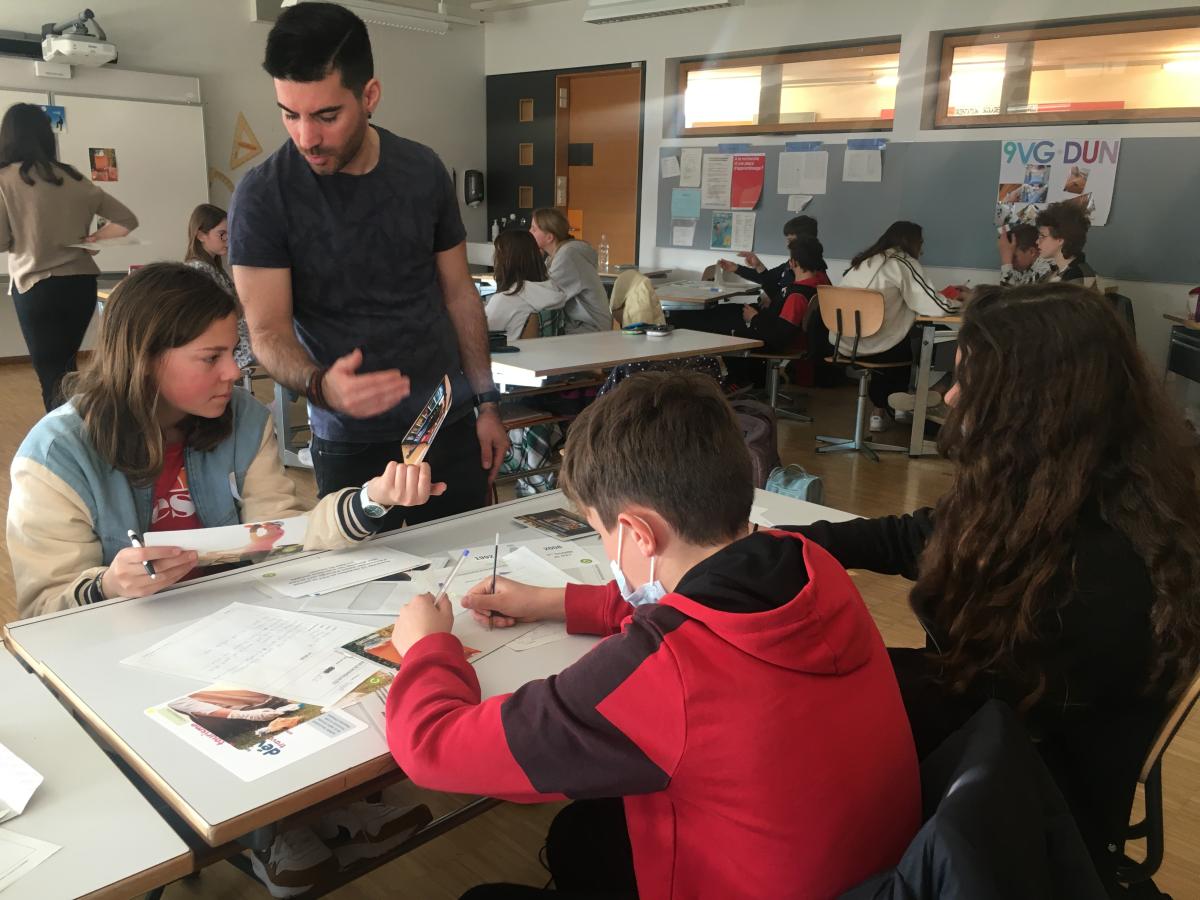I gruppi si suddividono i diversi ruoli: il direttore o la direttrice dell’istituto, il fornitore o la fornitrice di distributori automatici, il o la negoziante locale, l’allievo l’allieva a favore del PET e l’allievo l’allieva contrario al PET.